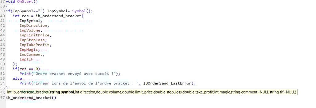 J'ai rajouté l'auto-complétion du code afin de faciliter le codage en me rapprochant le plus possible de la structure syntaxique de MT5.