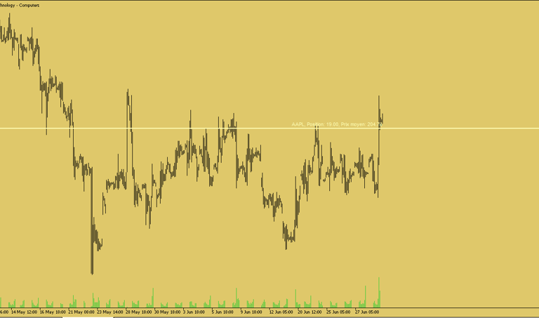 La position affichée, ici en jaune pâle, est la moyenne de vos différentes positions sur cet actif.
